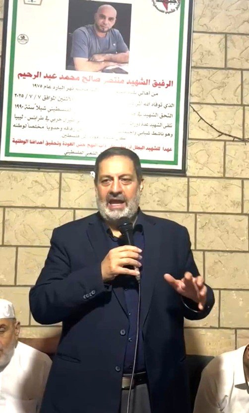 واعتبر الدكتور شعبان في كلمته أن الراحل أمضى حياته في النضال من أجل هذا الشعب الفلسطيني فكان مع رفاقه في الجبهة الذين هم بيننا اليوم ومع كل أهلنا وإخوتنا في هذا المخيم وفي كل المخيمات يرفعون لواء الحرية والكرامة لأمتنا.