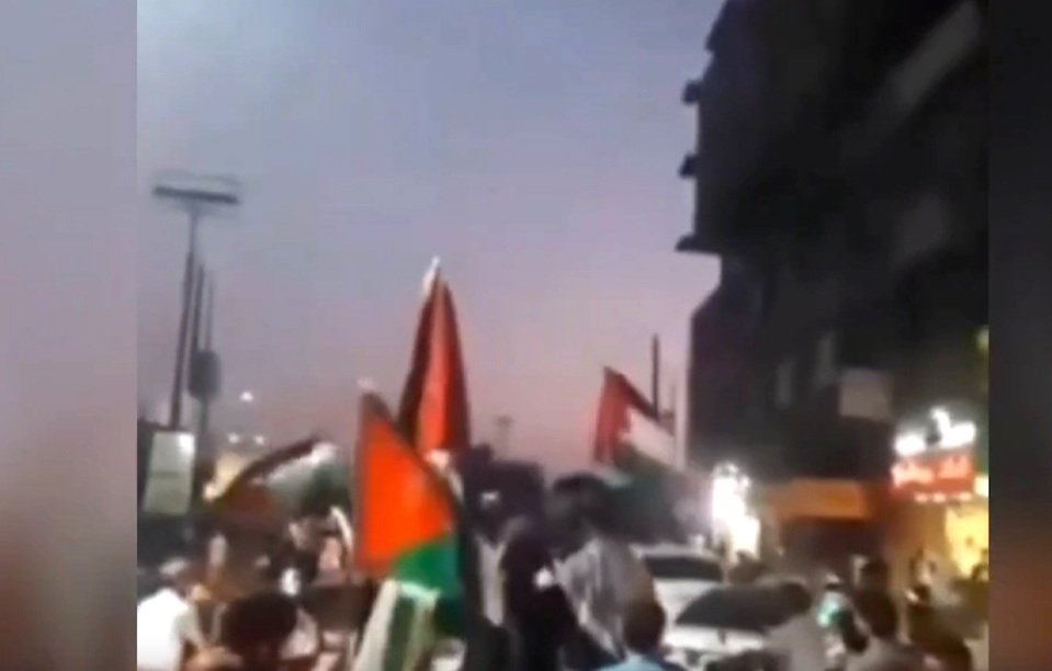 وأظهرت مقاطع فيديو تداولها ناشطون عبر منصات التواصل الاجتماعي عشرات المتظاهرين يجوبون شوارع حمص بالسيارات والدراجات النارية، ملوّحين بالأعلام الفلسطينية ومرددين هتافات مناهضة لـ”إسرائيل” وأخرى داعمة للشعب الفلسطيني.