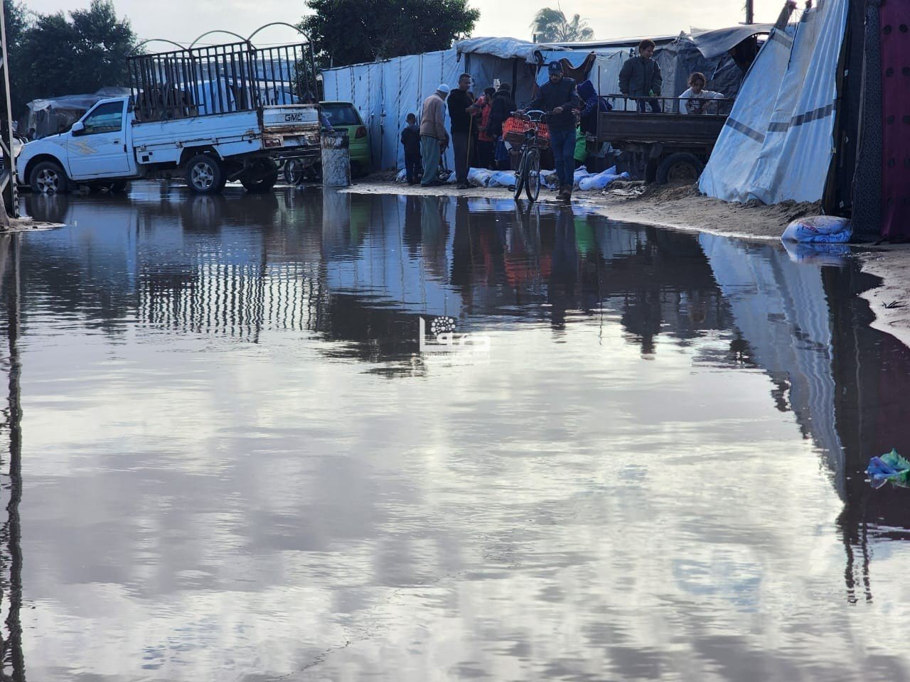 ومنذ يومين تتأثر فلسطين بمنخفض جوي وتساقط غزير للأمطار ما تسبب بغرق خيام للنازحين في عدة مناطق في قطاع غزّة المدمر بفعل حرب الإبادة الجماعية.