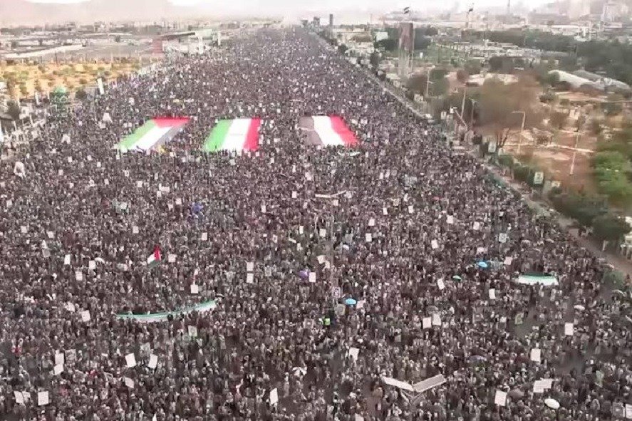 شهد “ميدان السبعين” في العاصمة اليمنية صنعاء، الأحد 1 آذار/مارس 2026، مسيرة مليونية كُبرى تضامنًا مع الشعب الإيراني، وتنديدًا بالعدوان الأميركي – الصهيوني عليه.